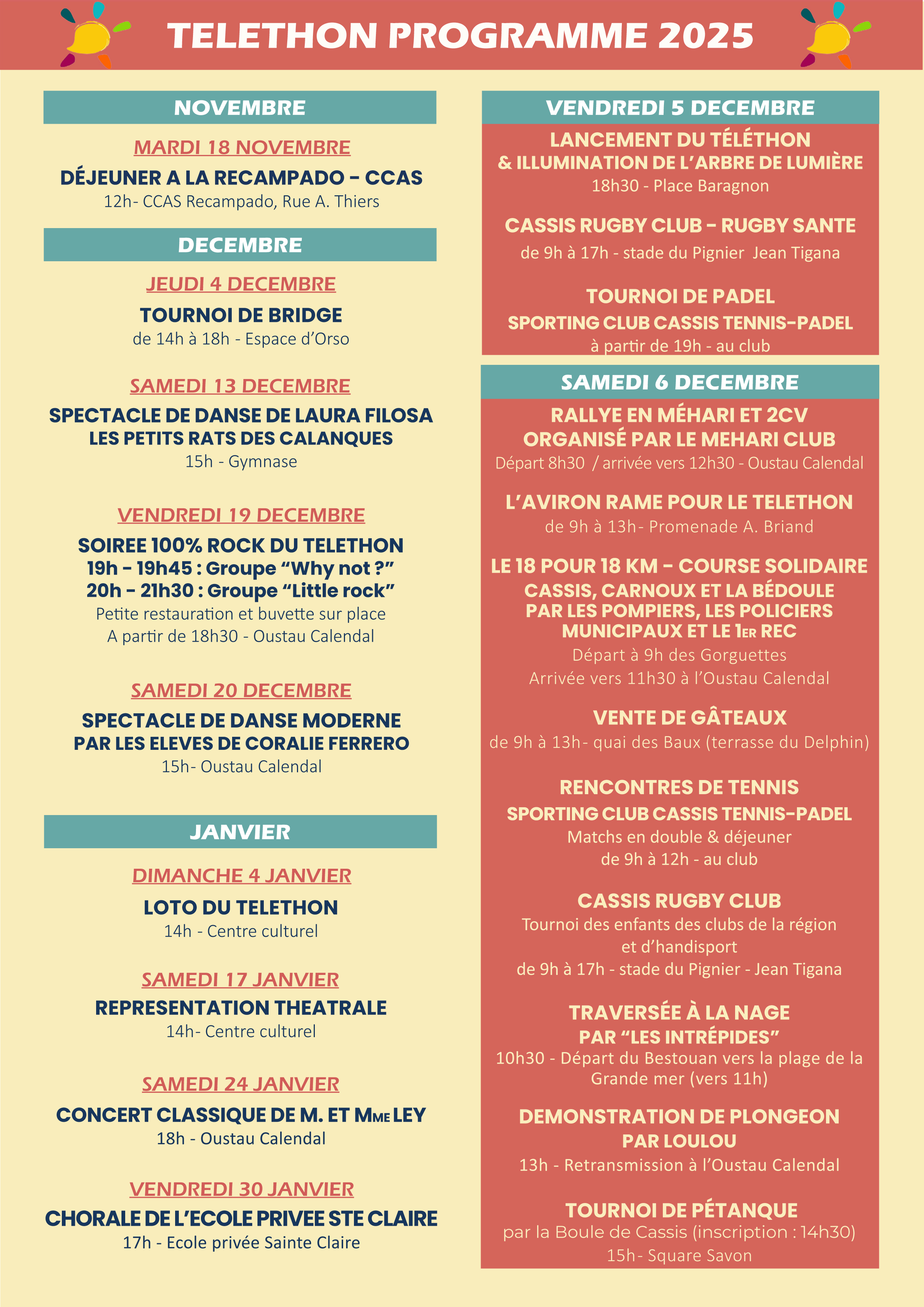 Comme chaque année, Cassis se mobilise avec cœur et énergie pour soutenir la recherche contre les maladies rares car Le Téléthon, au-delà de la collecte de fonds, est un véritable rendez-vous de solidarité, de convivialité et de partage.