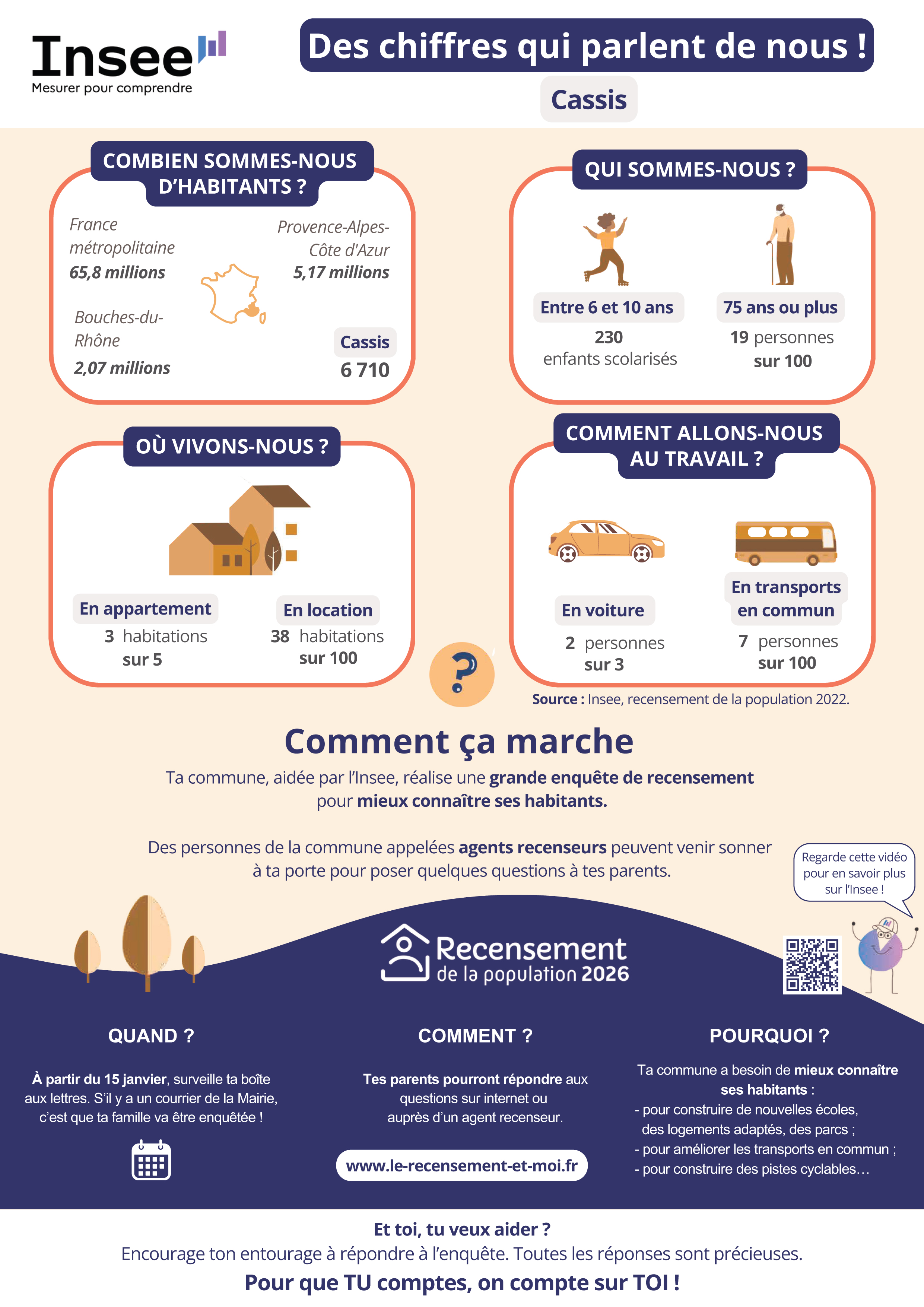 Tous les cinq ans, la commune de Cassis procède au recensement de sa population. Cette opération, essentielle pour la vie locale, permet de mieux connaître les habitants et ainsi, de répondre à leurs besoins.